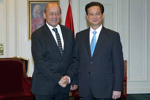 (Chinhphu.vn) - Trong chuyến thăm chính thức Cộng hoà Pháp, chiều 24/9 (giờ địa phương), tại Paris, Thủ tướng Nguyễn Tấn Dũng đã tiếp Bộ trưởng Quốc phòng Pháp Le Drain; Bí thư toàn quốc Đảng Cộng sản Pháp Pierre Laurent; Đoàn đại biểu Hội Hữu nghị Pháp-Việt.