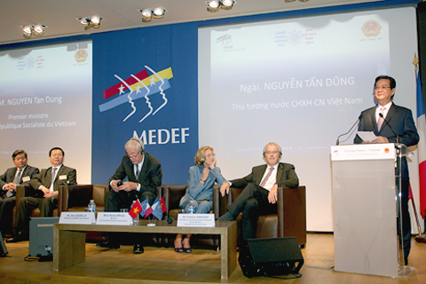 (Chinhphu.vn) - Đối thoại với các DN hàng đầu của Pháp, Thủ tướng Nguyễn Tấn Dũng tin tưởng cùng với việc quan hệ hai nước bước sang một tầm cao mới, các nhà đầu tư và doanh nghiệp Pháp sẽ tìm thấy nhiều cơ hội làm ăn tại thị trường Việt Nam.