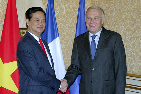 (Chinhphu.vn) - Trưa 25/9, tại Paris, Thủ tướng Nguyễn Tấn Dũng và Thủ tướng Pháp Jean-Marc Ayrault đã hội đàm và thống nhất những phương hướng lớn nhằm thúc đẩy hợp tác hai nước; trao đổi về các vấn đề quốc tế và khu vực mà hai bên cùng quan tâm.