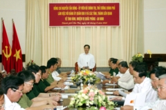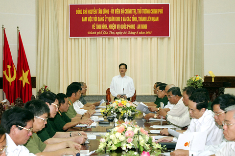 (Chinhphu.vn) - Chiều 23/8, tại trụ sở Bộ Tư lệnh Quân khu 9 (TP. Cần Thơ), Thủ tướng Nguyễn Tấn Dũng đã có buổi làm việc với Đảng ủy Quân khu 9 và lãnh đạo các tỉnh, thành phố liên quan về tình hình thực hiện nhiệm vụ quốc phòng-an ninh.