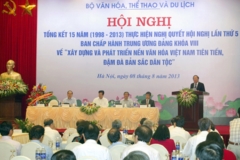 (Chinhphu.vn) - Ngày 8/8, Bộ VHTTDL tổ chức Hội nghị tổng kết 15 năm (1998-2013) thực hiện Nghị quyết Trung ương 5, khóa VIII, về “Xây dựng và phát triển nền văn hóa Việt Nam tiên tiến, đậm đà bản sắc dân tộc”.