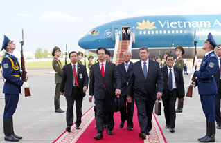 (Chinhphu.vn) - Tối 15/5 (giờ địa phương), Thủ tướng Nguyễn Tấn Dũng cùng đoàn đại biểu Việt Nam đã tới Thủ đô Minsk, bắt đầu chuyến thăm chính thức Cộng hòa Belarus theo lời mời của Thủ tướng Chính phủ CH Belarus M. Myasnikovich.