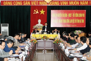 (Chinhphu.vn) – Tiếp tục các hoạt động trong chuyến công tác một số tỉnh miền Trung, ngày 2/12, Thủ tướng Nguyễn Tấn Dũng đã có buổi làm việc với lãnh đạo chủ chốt tỉnh Hà Tĩnh về tình hình kinh tế-xã hội địa phương.