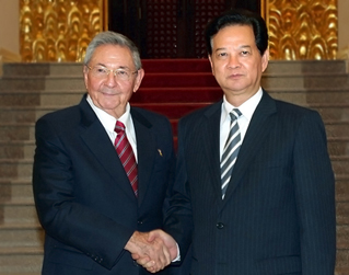 (Chinhphu.vn)- Chiều ngày 8/7, Thủ tướng Nguyễn Tấn Dũng đã hội kiến đồng chí Raul Castro Ruz, Bí thư Thứ nhất Ban Chấp hành Trung ương Đảng Cộng sản Cuba, Chủ tịch Hội đồng Nhà nước và Hội đồng Bộ trưởng nước CH Cuba đang thăm hữu nghị chính thức nước ta.