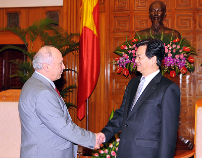 (Chinhphu.vn) – Chiều 5/4, tại Trụ sở Chính phủ, Thủ tướng Chính phủ Nguyễn Tấn Dũng đã tiếp Đại sứ Rumania Dumitru Olaru tới chào từ biệt nhân kết thúc nhiệm kỳ công tác tại Việt Nam.