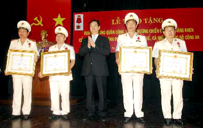 (Chinhphu.vn) - Đảng và Nhà nước đánh giá cao sự cống hiến và hy sinh to lớn của lực lượng CAND cho sự nghiệp cách mạng của Đảng, trong công tác đấu tranh trong các chuyên án chính trị, đặc biệt là chuyên án C509 và trong việc thực hiện các kế hoạch công tác đặc biệt phục vụ hiệu quả công tác đối ngoại của Đảng và Nhà nước.