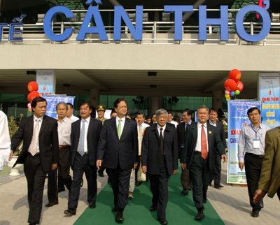 (Chinhphu.vn) - Trong ngày đầu tiên của năm 2011, tại TP. Cần Thơ, Thủ tướng Nguyễn Tấn Dũng, nguyên Tổng Bí thư Lê Khả Phiêu, Phó Thủ tướng Trương Vĩnh Trọng và nhiều đồng chí lãnh đạo cấp cao đã tham dự Lễ khánh thành Cảng hàng không quốc tế Cần Thơ, đánh dấu bước phát triển mới trong việc kết nối hạ tầng giao thông miền Tây Nam bộ.