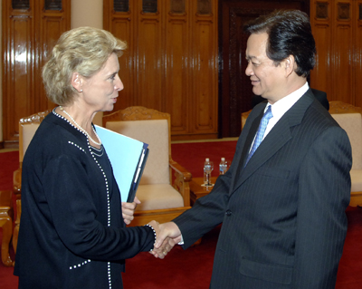 (Chinhphu.vn) – Chiều 20/9, tại Trụ sở Chính phủ, Thủ tướng Nguyễn Tấn Dũng đã tiếp Thống đốc bang Washington (Hoa Kỳ), bà Christine Gregoire đang thực hiện chuyến công tác về hợp tác thương mại tại Việt Nam.