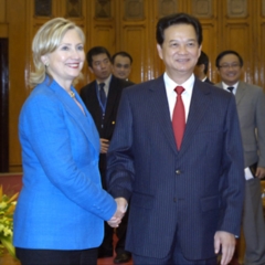 (Chinhphu.vn) - Thủ tướng Nguyễn Tấn Dũng và Bộ trưởng Ngoại giao Hoa Kỳ Hillary Clinton đồng tình việc hai bên nỗ lực phấn đấu, tiếp tục đưa quan hệ hai nước lên tầm cao mới, phát triển hợp tác nhiều mặt, đem lại lợi ích thiết thực cho cả hai bên trên cơ sở tôn trọng, bình đẳng, cùng có lợi.
