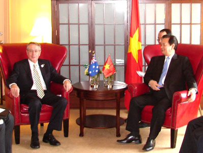 (Chinhphu.vn) – Trước thềm Hội nghị Thượng đỉnh G20, tại Toronto (Canada), Thủ tướng Nguyễn Tấn Dũng đã có các cuộc gặp với Phó Thủ tướng Australia, Thủ tướng Ethiopia và Thủ tướng Hà Lan nhằm thúc đẩy mạnh mẽ các mối quan hệ song phương.