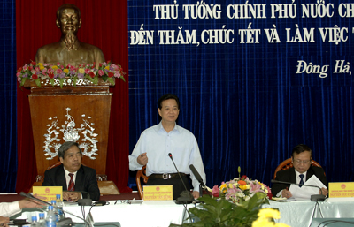 (Chinhphu.vn) – Thăm, làm việc và chúc Tết tỉnh giàu truyền thống cách mạng Quảng Trị hôm nay (8/2), Thủ tướng Nguyễn Tấn Dũng mong muốn tỉnh tìm tòi, năng động tạo ra các cú hích mới để đẩy nhanh tốc độ tăng trưởng kinh tế xã hội. "Làm sao mỗi tháng, mỗi năm có sự chuyển biến, cải thiện được đời sống nhân dân".