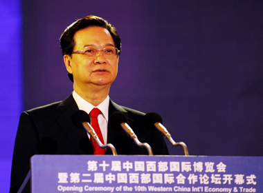 (Chinhphu.vn) - Sáng 16/10, Thủ tướng Nguyễn Tấn Dũng đã dự và phát biểu tại Hội chợ quốc tế miền Tây Trung Quốc lần thứ 10 và Diễn đàn Hợp tác Quốc tế miền Tây Trung Quốc lần thứ 2 tại Thành Đô, thủ phủ tỉnh Tứ Xuyên.