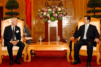 (Chinhphu. vn) – Chiều 2/7, tại Trụ sở Chính phủ, Thủ tướng Nguyễn Tấn Dũng đã tiếp thân mật Thị trưởng Khu tài chính London Ian David Luder và lãnh đạo một số ngân hàng, công ty dịch vụ tài chính hàng đầu Vương quốc Anh đang ở thăm Việt Nam nhằm góp phần thúc đẩy hợp tác trong lĩnh vực ngân hàng, dịch vụ tài chính giữa hai nước.