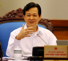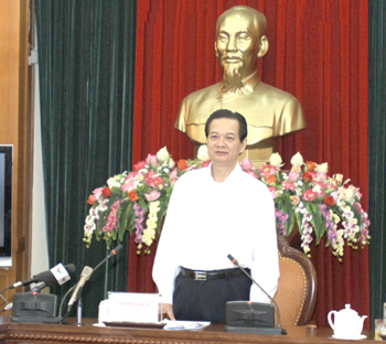 (Chinhphu.vn) – Thủ tướng Nguyễn Tấn Dũng đã nhấn mạnh trong buổi làm việc với lãnh đạo chủ chốt Ngân hàng Nhà nước, chiều 26/6. Tham dự buổi làm việc có Phó Thủ tướng Thường trực Nguyễn Sinh Hùng cùng lãnh đạo Văn phòng Chính phủ, các Bộ Tài chính, Kế hoạch và Đầu tư, Ủy ban giám sát Tài chính Quốc gia và các Ngân hàng thương mại Nhà nước.