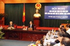 (Chính phủ.vn)- Sáng 21/2 tại Hà Nội, Thủ tướng Nguyễn Tấn Dũng và các Phó Thủ tướng Chính phủ đã làm việc với Lãnh đạo Quốc hội nhằm đánh giá hiệu quả công tác phối hợp trong thời gian qua, bàn biện pháp nâng cao chất lượng công tác này trong năm 2009 và những năm tiếp theo.