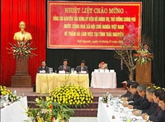 (Chinhphu.vn) - Hôm nay (14/1), Thủ tướng Nguyễn Tấn Dũng và đoàn công tác của Chính phủ đã về thăm, chúc Tết Đảng bộ, chính quyền, các lực lượng vũ trang và nhân dân các dân tộc tỉnh Thái Nguyên, làm việc với lãnh đạo tỉnh Thái Nguyên về kết quả phát triển kinh tế - xã hội năm 2008 và phương hướng năm 2009.