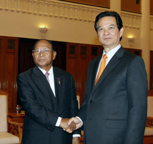 (Chinhphu.vn) - Chiều 16/1/2009, tại Hà Nội, Thủ tướng Nguyễn Tấn Dũng đã có buổi hội kiến với Chủ tịch Quốc hội Camphuchia, Samdec Heng Samrin dẫn đầu đoàn đại biểu cấp cao Quốc hội Vương quốc Campuchia đang có chuyến thăm, làm việc tại Việt Nam.
