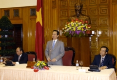 (Chinhphu.vn)- Thủ tướng Nguyễn Tấn Dũng đánh giá cao những đóng góp của cá nhân cựu Thủ tướng Yasuo Fukuda và mong muốn cựu Thủ tướng sẽ có đóng góp tích cực để thời gian tới hai nước Việt Nam-Nhật Bản sớm ký kết hiệp định đối tác kinh tế, cùng nhau thỏa thuận khôi phục lại vốn vay ODA và tăng cường quan hệ hiểu biết lẫn nhau, cùng hợp tác có hiệu quả vì lợi ích chung của hai nước, hai dân tộc.