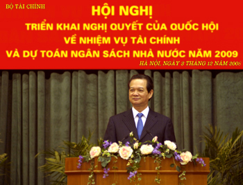 (Chinhphu.vn) - Ngày 3/12, tại Hà Nội, Thủ tướng Chính phủ Nguyễn Tấn Dũng đã dự Hội nghị ngành Tài chính triển khai Nghị quyết của Quốc hội về nhiệm vụ Tài chính và dự toán Ngân sách nhà nước năm 2009.