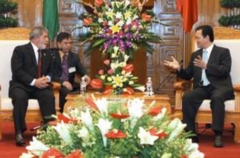 (Cổng TTĐT Chính phủ) - Trong buổi tiếp Tổng thống Cộng hòa Liên bang Brazil Luiz Inácio Lula Da Silva đang ở thăm chính thức nước ta chiều 10/7 tại Trụ sở Chính phủ, Thủ tướng Chính phủ Nguyễn Tấn Dũng bày tỏ, Việt Nam mong muốn hợp tác sâu rộng với Brazil trên nhiều lĩnh vực đặc biệt là nông nghiệp, hàng không, dầu khí, sản xuất điện, nhiên liệu sinh học...