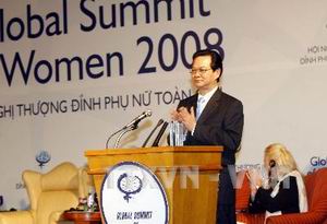 (Cổng TTĐT Chính phủ) - Với chủ đề Phụ nữ và châu Á - Động lực của kinh tế toàn cầu, Hội nghị Thượng đỉnh Phụ nữ toàn cầu năm 2008 đã chính thức khai mạc tại Hà Nội chiều nay (5/6) với sự tham dự của hơn 1.000 đại biểu là các nữ quan chức chính phủ, các nữ doanh nhân, trong đó có nữ doanh nhân lãnh đạo tập đoàn đa quốc gia đến từ hơn 70 nước. Thủ tướng Chính phủ Nguyễn Tấn Dũng đã tham dự và phát biểu tại Lễ khai mạc Hội nghị.