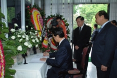 (Cổng TTĐT Chính phủ)- Sáng nay 21/5, Thủ tướng Nguyễn Tấn Dũng đã thay mặt Chính phủ và nhân dân Việt Nam đến Đại sứ quán Myanmar tại Hà Nội đặt vòng hoa tưởng niệm những nạn nhân của cơn bão Nargis gây ra tại Myanmar và ghi sổ tang. Bộ trưởng, Chủ nhiệm Văn phòng Chính phủ Nguyễn Xuân Phúc tham gia đoàn của Thủ tướng.