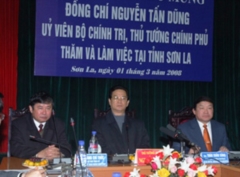 (Website Chính phủ) – Ngày 1/3, trong buổi làm việc với lãnh đạo chủ chốt Sơn La, Thủ tướng Nguyễn Tấn Dũng đã yêu cầu các Bộ, ngành Trung ương cùng chung sức, phấn đấu quyết liệt để đến cuối năm 2008 đưa tỉnh miền núi cao, biên giới Sơn La khỏi tình trạng tỉnh đặc biệt khó khăn.
