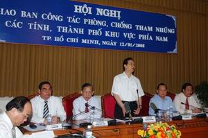 (Website Chính phủ) – Thủ tướng Nguyễn Tấn Dũng, Trưởng Ban chỉ đạo Trung ương về phòng, chống tham nhũng đã nhấn mạnh như vậy trong Hội nghị giao ban ngày 12/1, tại Thành phố Hồ Chí Minh với lãnh đạo 32 tỉnh, thành phố khu vực phía Nam nhằm tổng kết công tác phòng, chống tham nhũng năm 2007 và phương hướng, nhiệm vụ năm 2008.