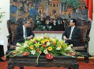 (Website Chính phủ) - Sáng 5/11, Thủ tướng Chính phủ Nguyễn Tấn Dũng đã tiếp Bộ trưởng Bộ Thương mại Hoa Kỳ Carlos M. Gutierrez đang dẫn đầu một phái đoàn gồm đại diện 22 công ty, tập đoàn kinh tế trọng điểm của Hoa Kỳ sang thăm và làm việc tại Việt Nam.