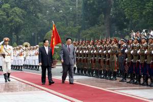(Website Chính phủ) – Nhận lời mời của Thủ tướng Chính phủ nước CHXHCN Việt Nam Nguyễn Tấn Dũng, Thủ tướng Nội các nước Cộng hòa Dân chủ Nhân dân (CHDCND) Triều Tiên Kim Yêng In dẫn đầu Đoàn đại biểu cấp cao Triều Tiên đã tới Hà Nội chiều ngày 26/10, bắt đầu chuyến thăm chính thức Việt Nam từ ngày 26-30/10/2007.
