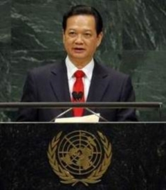 (Website Chính phủ) - Vào lúc 17 giờ 45' ngày 27/9 theo giờ New York, (05 giờ 45' ngày 28/9 theo giờ Việt Nam), Thủ tướng Nguyễn Tấn Dũng đã có bài phát biểu quan trọng ở phiên thảo luận chung tại khóa họp lần thứ 62 Đại hội đồng Liên hợp quốc (LHQ). Thủ tướng Nguyễn Tấn Dũng khẳng định: Việt Nam sẽ luôn là thành viên tích cực, xây dựng, hợp tác, có trách nhiệm trong đời sống quốc tế, xứng đáng với sự tin cậy của các nước thành viên LHQ.