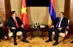 (Chinhphu.vn) - Trong khuôn khổ tham dự Lễ ký chính thức Hiệp định Thương mại tự do giữa Việt Nam và Liên minh Kinh tế Á-Âu tại tỉnh Burabai, Kazakhstan, chiều 29/5, Thủ tướng Nguyễn Tấn Dũng có cuộc gặp với Thủ tướng Armenia Hovik Abrahamyan.