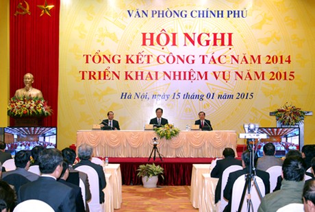 (Chinhphu.vn) - Thủ tướng Chính phủ Nguyễn Tấn Dũng dự và chỉ đạo Hội nghị tổng kết công tác năm 2014, triển khai nhiệm vụ năm 2015 của Văn phòng Chính phủ (VPCP) tổ chức sáng 15/1/2015.