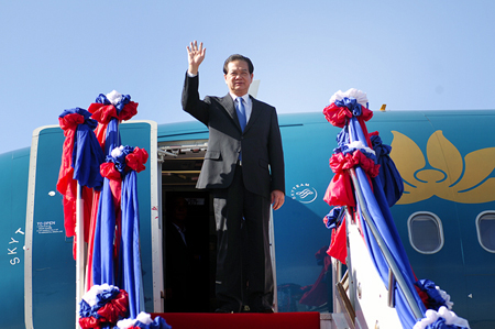 Thủ tướng Nguyễn Tấn Dũng tới Vientiane