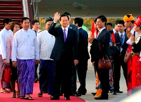(Chinhphu.vn) – Chiều tối (11/11), Thủ tướng Chính phủ Nguyễn Tấn Dũng và Đoàn đại biểu Việt Nam đã tới Thủ đô Nay Pyi Taw của Myanmar tham dự Hội nghị Cấp cao ASEAN lần thứ 25 và các hội nghị cấp cao liên quan diễn ra trong ngày 12 và 13/11.