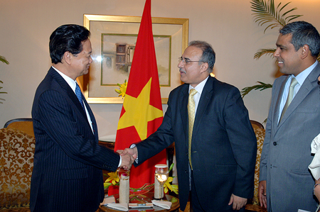 (Chinhphu.vn) - Tiếp đại diện các Tập đoàn lớn của Ấn Độ, Thủ tướng Nguyễn Tấn Dũng hoan nghênh và khẳng định, trên tinh thần Đối tác chiến lược, Chính phủ Việt Nam sẽ tạo điều kiện thuận lợi để các công ty Ấn Độ đầu tư kinh doanh tại Việt Nam trên tất cả các lĩnh vực.