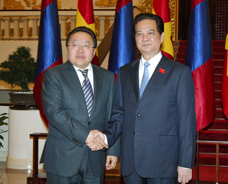 (Chinhphu.vn) - Chiều 21/11, tại Trụ sở Chính phủ, Thủ tướng Nguyễn Tấn Dũng đã hội kiến Tổng thống Mông Cổ Tsakhiagin Elbegdorja đang có chuyến thăm cấp Nhà nước tới Việt Nam.
