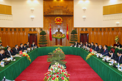 (Chinhphu.vn) - Ngày 13/10, tại trụ sở Chính phủ, Thủ tướng Nguyễn Tấn Dũng đã có cuộc hội đàm với Thủ tướng Quốc Vụ viện nước CHND Trung Hoa Lý Khắc Cường đang ở thăm chính thức Việt Nam.