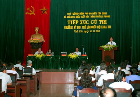 (Chinhphu.vn) – Chiều 16/10, Thủ tướng Chính phủ Nguyễn Tấn Dũng và Đoàn đại biểu Quốc hội thành phố Hải Phòng đã tiếp xúc cử tri huyện Vĩnh Bảo, Hải Phòng.