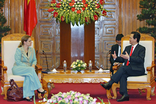 (Chinhphu.vn) – Chiều 31/10, tại Trụ sở Chính phủ, Thủ tướng Nguyễn Tấn Dũng đã tiếp Đại sứ Israel Meirav Eilon Shahar tới chào xã giao nhân nhận nhiệm vụ công tác mới tại Việt Nam.