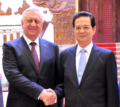 (Chinhphu.vn) – Thủ tướng Nguyễn Tấn Dũng và Thủ tướng Thủ tướng Belarus Mikhail Myasnikovich thống nhất nhiều biện pháp thúc đẩy quan hệ hợp tác song phương giữa hai nước, trong đó khẳng định ưu tiên thúc đẩy hợp tác kinh tế, thương mại, đầu tư.
