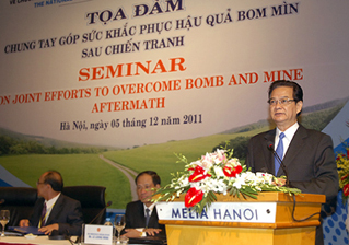 (Chinhphu.vn) - Chính phủ Việt Nam đã phê duyệt Chương trình hành động quốc gia khắc phục hậu quả bom mìn sau chiến tranh với mong muốn Việt Nam trở thành quốc gia không còn tác động của bom mìn, vật nổ, tạo môi trường an toàn cho dân cư sinh sống tại các khu vực ô nhiễm bom mìn và tạo mọi điều kiện để nạn nhân bị thương tật do bom mìn hòa nhập vào đời sống xã hội