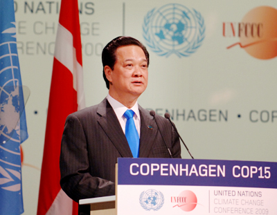 (Chinhphu.vn) - Phát biểu tại Hội nghị thế giới về biến đổi khí hậu ở Copenhagen, Đan Mạch, tối 16/12 (theo giờ Hà Nội), Thủ tướng Chính phủ Nguyễn Tấn Dũng nhấn mạnh: Trái đất là ngôi nhà chung của nhân loại, vì vậy việc ứng phó với biến đổi khí hậu là trách nhiệm của mọi quốc gia, mọi người.