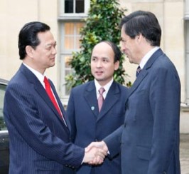 (Website Chính phủ)- Trưa 1/10/2007, tại Dinh Thủ tướng Pháp-Điện Matignon, Thủ tướng Chính phủ Nguyễn Tấn Dũng đã có buổi hội kiến riêng và sau đó hội đàm với Thủ tướng Pháp Francois Fillon. Hai bên nhất trí thúc đẩy mạnh mẽ, nâng lên tầm cao mới mối quan hệ hữu nghị truyền thống, hợp tác toàn diện, lâu dài, tin cậy trong thế kỷ 21.